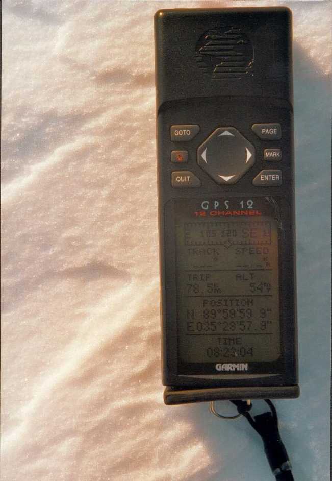 The GPS won't show 90 degrees North, it only goes up to 89 degrees 59 minutes and 59.9 seconds.